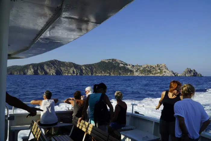 Avec le beau temps, la mer est calme et notre trajet se passe pour le mieux du monde. Nous avons l’occasion d’admirer le ciel et la mer et nous comprenons pourquoi la région s’appelle la côte d’azur.
